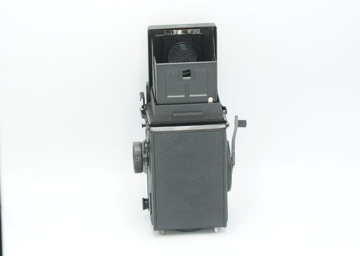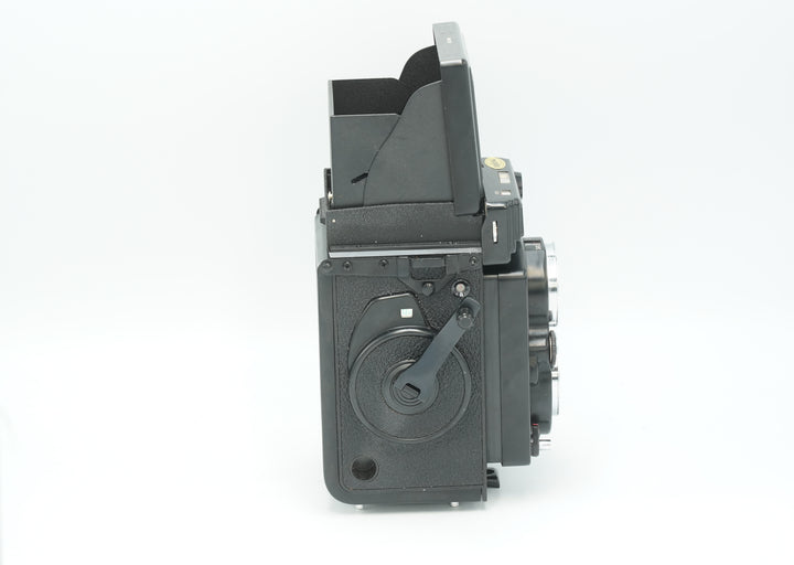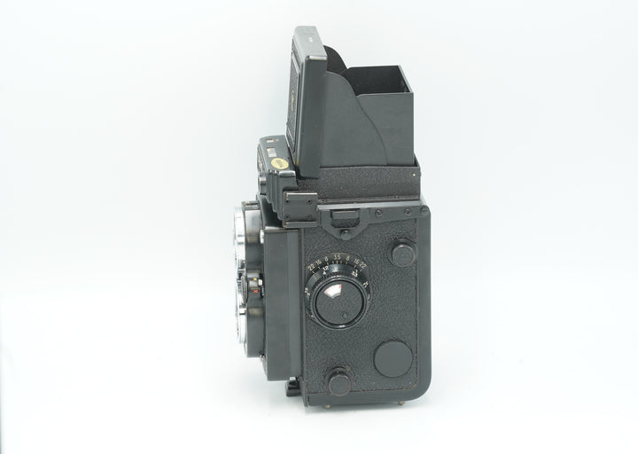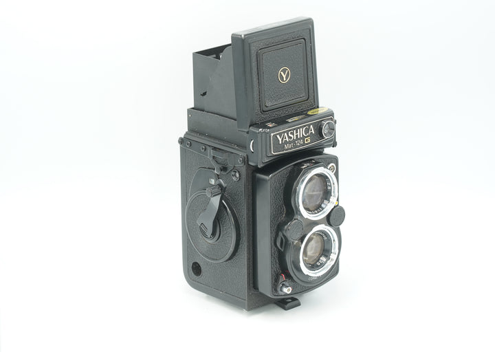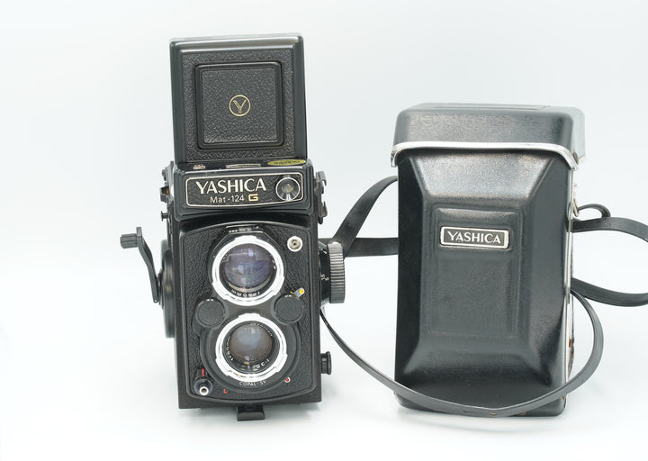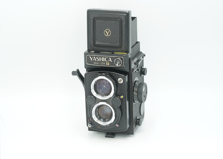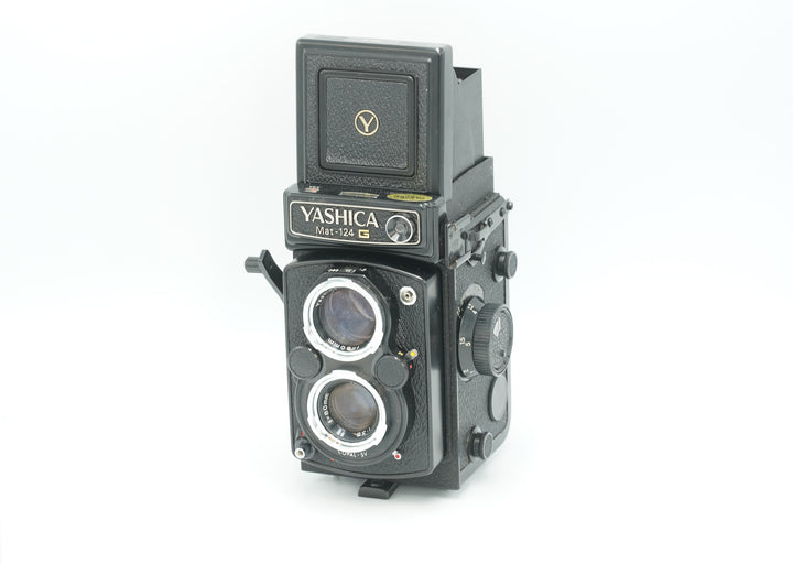 The Yashica Mat 124G was made from 1970 to 1986 and was the last TLR that Yashica made. It was a commercial success, featuring a Yashinon 80mm f3.5 lens. Focusing is via a ground glass screen, with a 3x diopter loupe for critical focusing, as well as a sports finder. The focusing screen is used with the camera at waist-level.