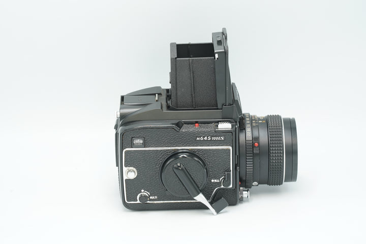 The 645 1000s has an improved maximum shutter speed of 1/1000s compared to 1/500th for the regular Mamiya 645, which can help in bright light conditions. The camera is sold with a waist level finder and allows for easier composition, and the Mamiya C 70mm f2.8 (50mm full frame equivalent), excellent sought-after lens for general portraiture and street photography.