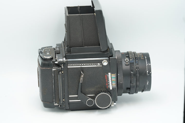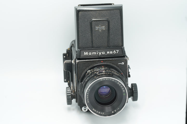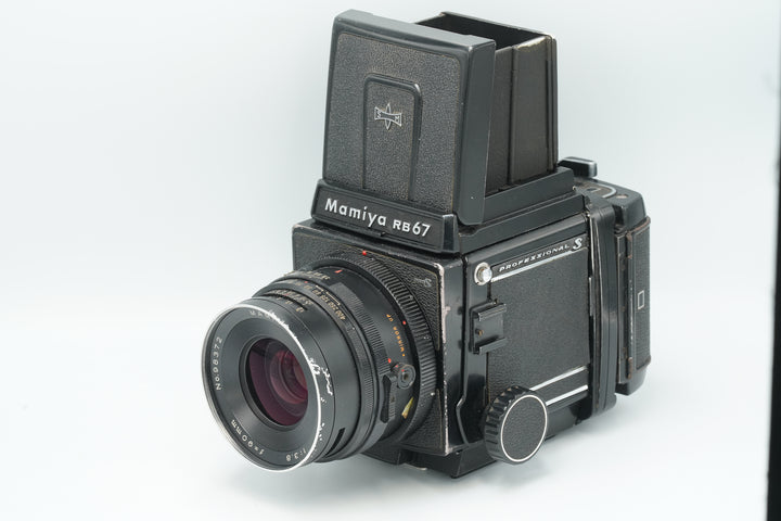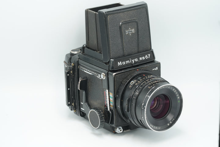 The Mamiya RB 67 Professional S is a highly regarded medium format camera from 1970. It used to be very popular with fashion and studio photographers thanks to the great image quality and its large 6x7 format. The system comprise of a camera body and interchangeable viewfinders, film backs, and lenses.