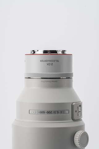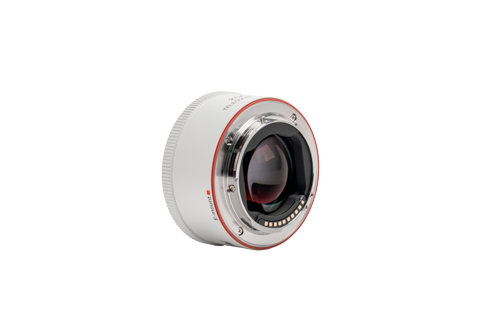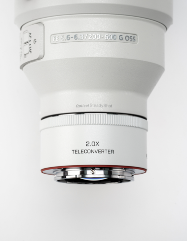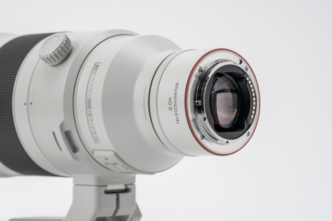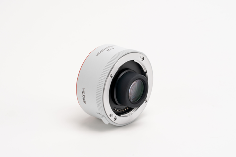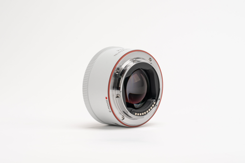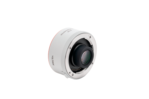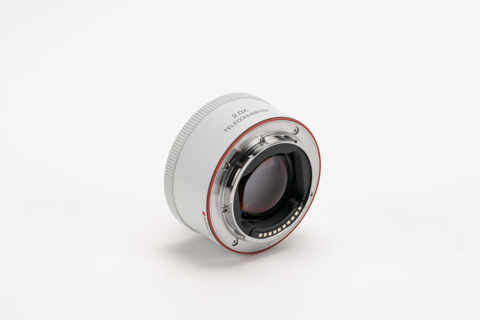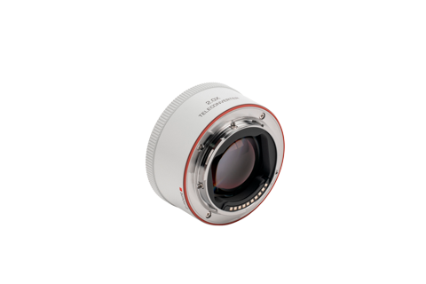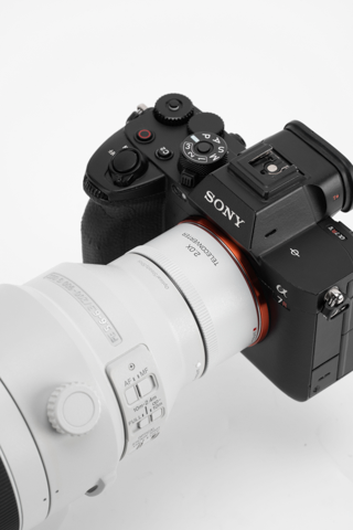 between an E-mount camera and a compatible telephoto lens to increase the focal length. The TELECONVERTER can double the focal length.
